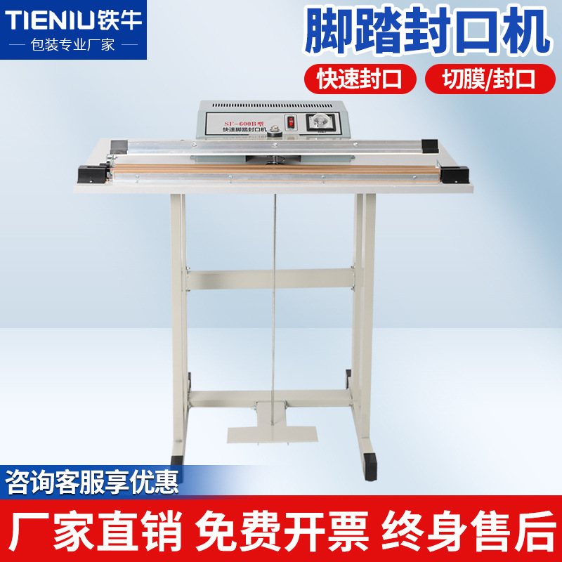 鐵牛半自動腳踏封口機立式通過式腳踩薄膜熱封切機腳踩薄膜塑封機