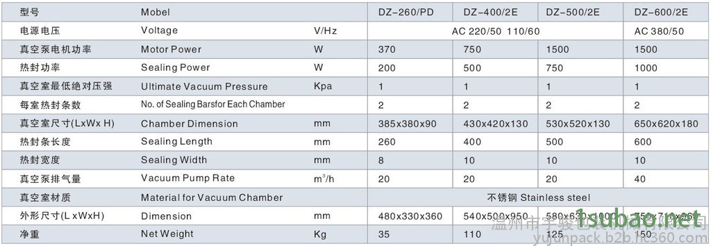 DZ系列真空包裝機和DZQ系列真空充氣包裝機,只需按下真空室蓋即可按設定的程序完成抽真空或抽真空后充入惰性氣體,封口、印字、冷卻、排氣的全過程。經真空或真空氣調包裝后的物品可防止氧化、霉變、蟲蛀、受潮、延長產品儲存期限。
